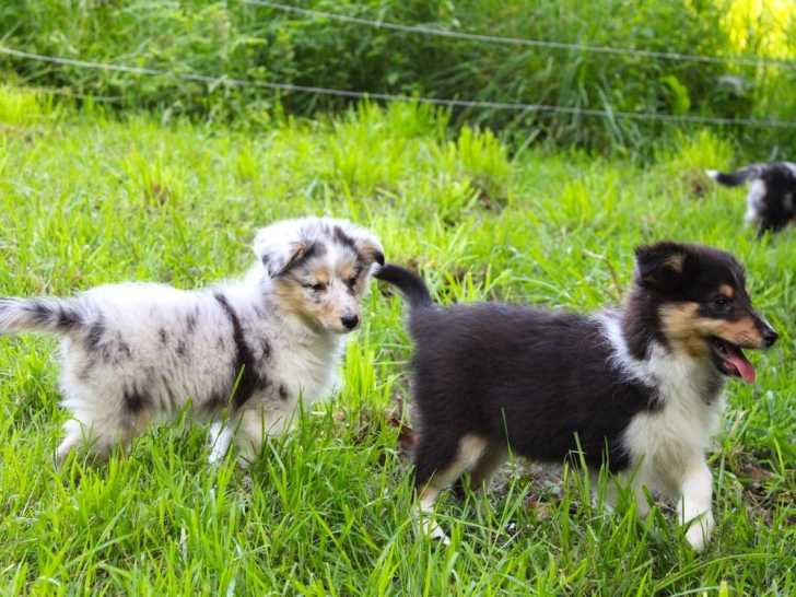 Les chiots sont tricolores ou merle bleu, issus de parents LOF, testés, équilibrés et affectueux. Chaque chiot est proposé au prix de 1 300 euros, pucé, vacciné et vermifugé régulièrement. Une assurance santé de 3 mois est offerte.