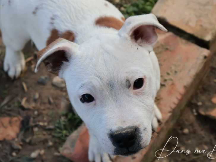 Notre élevage Dans ma Bull propose cinq chiots Staffordshire Bull Terriers inscrits au Livre des Origines Français (LOF), nés récemment. Ces mâles, de couleurs variées, sont sociables avec enfants, chats et chiens.