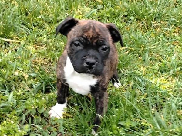 Six mâles Staffordshire Bull Terriers sont disponibles, élevés dans un environnement familial avec enfants et autres chiens. Ils sont inscrits dans le Livre des Origines Français (LOF) et socialisés pour...