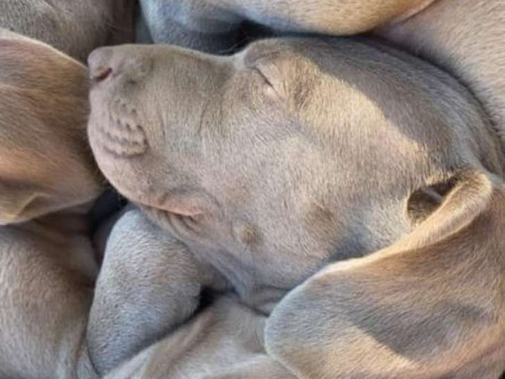 Nous proposons une portée de six chiots Braques de Weimar âgés de trois mois. Mâles et femelles sont disponibles dès maintenant. Le prix est de 1400 euros chacun.