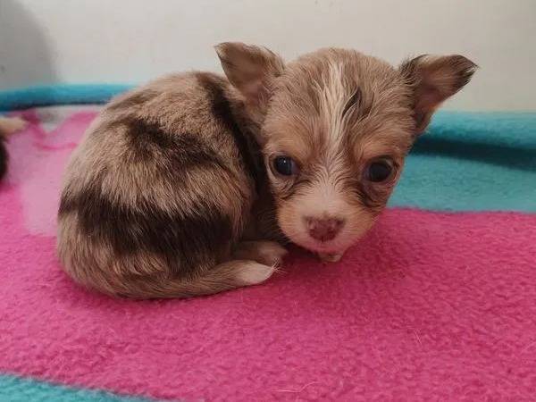 Six magnifiques chiots Chihuahua poil long de race pure voient le jour le 14 octobre 2025. Nous proposons des mâles et femelles aux couleurs rares : lavande, merle chocolat et bleu merle.