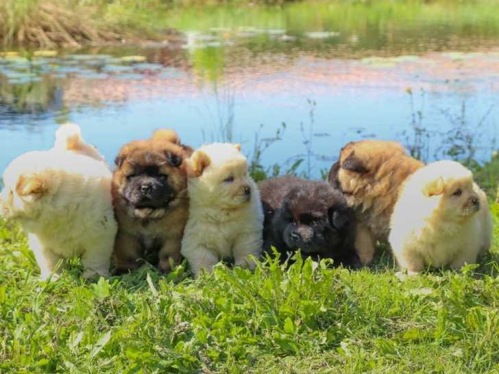 Une portée de 6 chiots Chow Chow non inscrite au Livre des Origines Français (LOF) est disponible à la réservation. Nous proposons 4 femelles de couleur crème vendues chacune à 1890 euros, 1 mâle crème à 1590 euros et 1 mâle noir à 1390 euros.