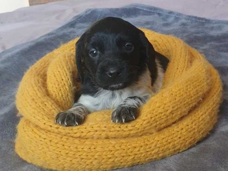 Nous vous proposons une portée de 6 chiots Épagneul Breton nés récemment. Ces superbes petits, issus de parents très "chasse" mais socialisés, grandissent dans un environnement qui favorise leur équilibre caractériel.