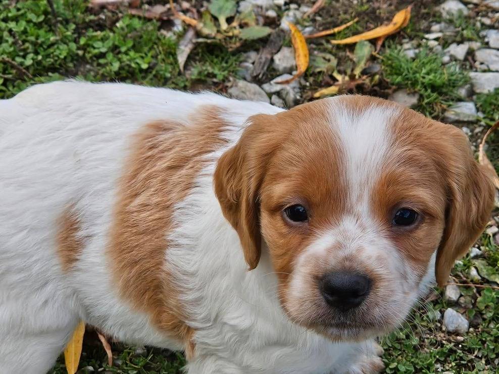 Les chiots Épagneuls Bretons de notre élevage sont nés le 28 septembre 2025 et grandissent au sein de la famille. Ils seront disponibles à partir du 30 novembre, parfaitement socialisés avec enfants et autres chiens.