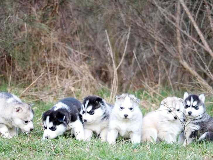 Nés le 08 mars 2022, 6 chiots Husky de Sibérie sont disponibles à la réservation : deux femelles sable platine, une femelle et deux mâles gris loup et une femelle gris clair.