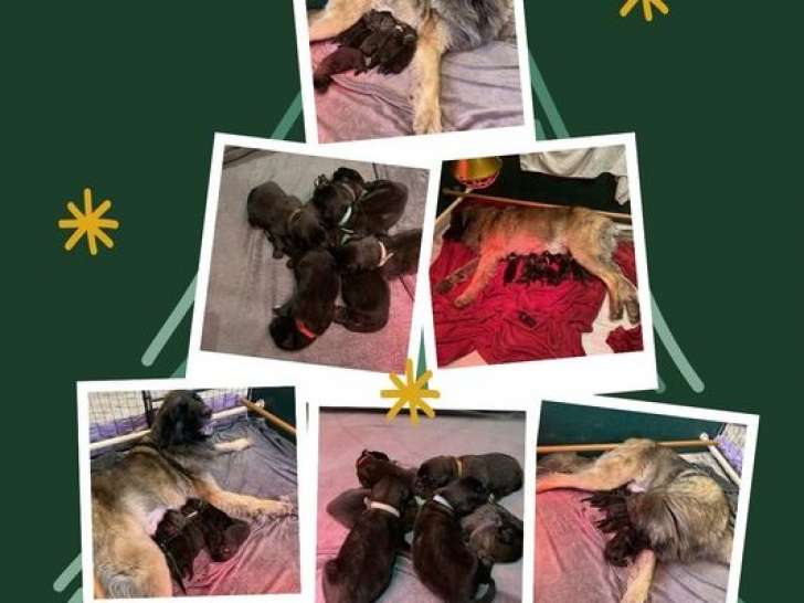 Nous proposons à la réservation une portée de six chiots Leonberg nés le 25 novembre 2025. Quatre mâles et deux femelles issus de parents testés et confirmés au Livre des Origines Français (LOF) sont disponibles. Le prix est de 1600 euros chacun.