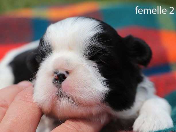 Notre élevage rend disponible à la réservation 6 chiots Shih Tzus, 4 mâles et 2 femelles au pelage noir et blanc nés au sein d’une portée de 6.