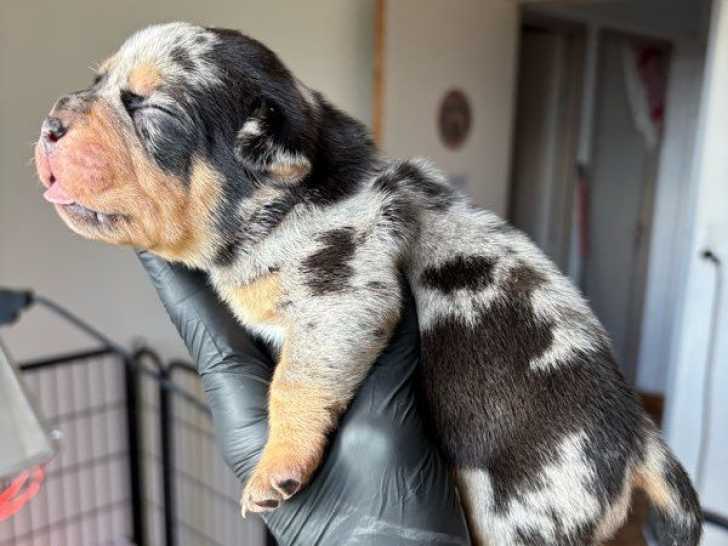 Nous proposons à la réservation sept chiots American Bully XL issus de prestigieuses lignées. Cette portée compte quatre mâles et trois femelles, arborant des robes merle choco, lilac et choco. Élevés en...