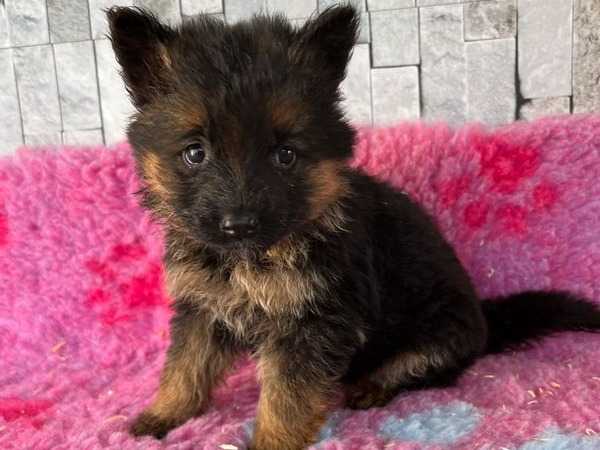 Sur une portée de six chiots Bergers Allemands poil long nés le 15 juillet 2025, il reste cinq petits à vendre. Nous proposons un mâle noir et feu, deux mâles fauve charbonné et deux femelles noir et feu pour...