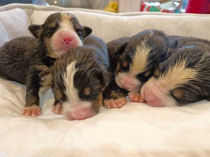 Nos adorables chiots Bouviers Bernois, nés le 15 décembre 2024, sont inscrits au Livre des Origines Français (LOF) et disponibles à la réservation. Ces trois mâles et quatre femelles rejoindront leur nouvelle famille à l’âge de 9 semaines.