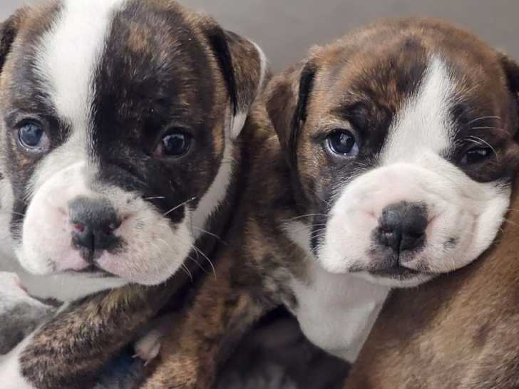 Nous avons le plaisir de vous présenter notre récente portée de Bulldogs Continentals dont cinq femelles et deux mâles. Ceux-ci étant nés le 9 octobre 2023, ils sont encore à réserver pour le moment. Chaque chiot arbore un pelage bringé, noir, fauve ou noir pan blanc.