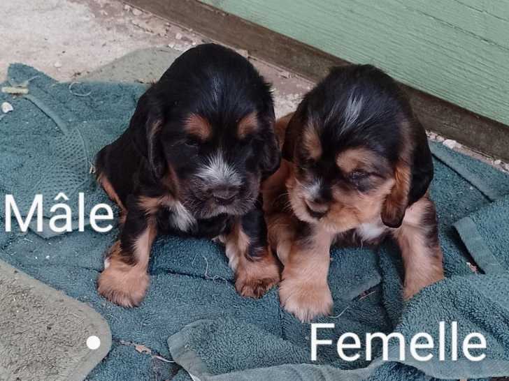 Sur une portée de sept chiots Cockers Anglais nés le 01 juin 2025, il reste un mâle noir et feu et une femelle noire, inscrits dans le Livre des Origines Français (LOF). Les chiots sont élevés en famille,...