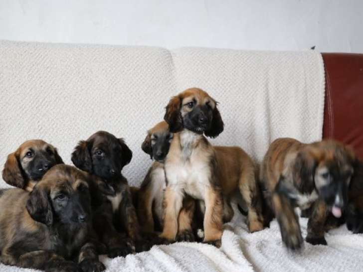 Le Domaine du Hameau du Fayel propose une portée de sept Lévrier Afghan nés le 12 septembre 2025. Parmi eux, un mâle blond masque noir et plusieurs femelles bringées sable ou blondes sont disponibles. Le prix est de 1600 euros chacun.