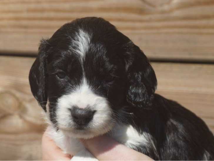 Il s'agit de 4 mâles et 3 femelles, noir et blanc ou marron et blanc, qui pourront quitter notre élevage une fois vaccinés, vermifugés et pucés, avec un certificat de bonne santé. Un kit pour chiot Royal Canin est également proposé, inclus dans le prix individuel à partir de 700 euros. Nous assurons en outre un suivi après le départ des chiots.