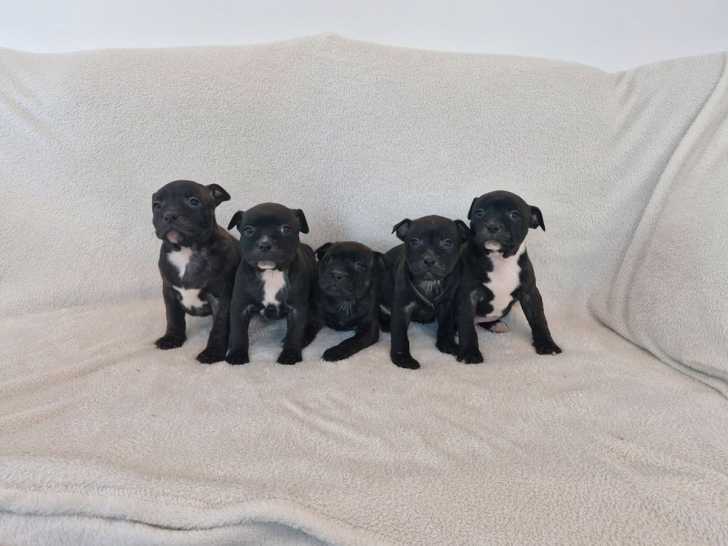 Nous proposons de magnifiques chiots Staffordshire Bull Terrier au pelage bleu, nés le 19 juillet 2025, et disponibles à partir du 16 septembre. Deux mâles bleu bringé, deux mâles bleu uni et une femelle sont...