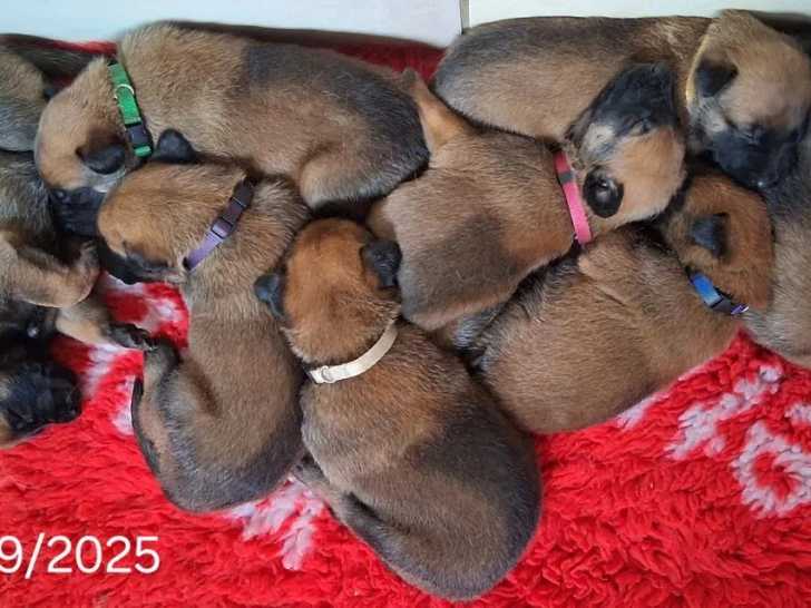 Nous vous présentons huit chiots Berger Belge Malinois nés le 8 septembre 2025. Cinq femelles et trois mâles évoluent dans un environnement familial et sécurisé.