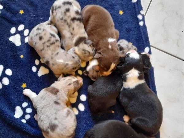 Nous proposons une portée de cinq Berger Américain Miniature inscrits au Livre des Origines Français (LOF). Nés en 2025, ils se déclinent en rouge tricolore et rouge merle, avec des mâles et des femelles...