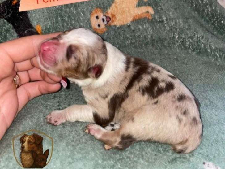 Nous vous proposons des chiots Berger Australien nés le 20 décembre 2025, élevés en famille et habitués aux enfants, chats et stimulations quotidiennes. Chaque chiot est pucé, vacciné, vermifugé et suivi par un vétérinaire.