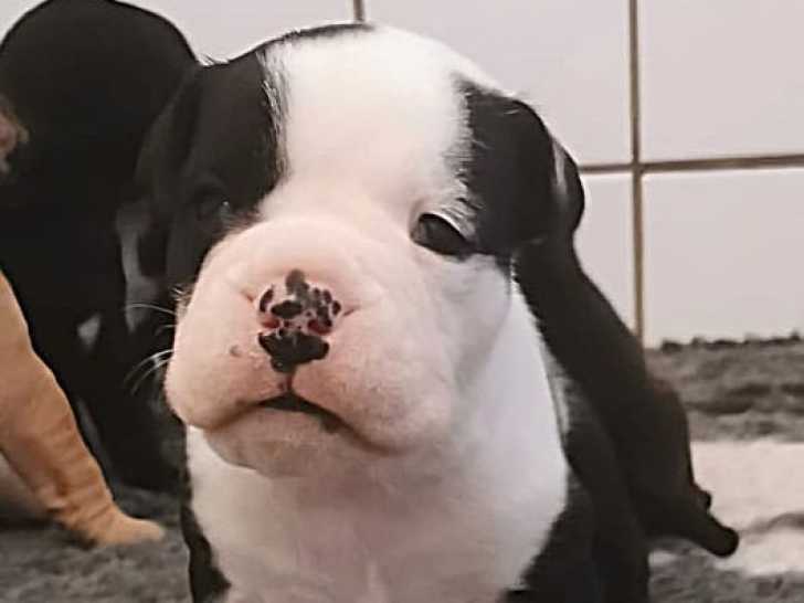 Disponibles à la réservation, 8 chiots Bulldog Continentaux inscrits au Livre des Origines Français (LOF) nés le 12 février 2025. Il reste 4 mâles (noir, noir et blanc, fauve) et 4 femelles (noires et 1 bringée). Les parents sont CH Sortilège Lor Molosse des Dieux de l'Arène et Farbenzauber Broilking LOF, testés pour les maladies de la race et ADN.