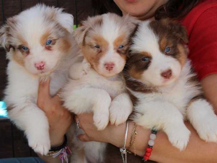 L’élevage Les Elfes du Dolmen propose trois chiots Bergers Australiens nés le 12 avril 2025 : un mâle rouge tricolore (Atlas), une femelle noire tricolore (Astra) et une femelle bleu merle (Ayo). Les deux...