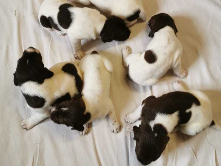 Sept chiots Braque Français grandissent au sein de notre environnement adapté. Ils seront disponibles après leur sevrage et leurs premiers soins vétérinaires. Non inscrits dans le Livre des Origines Français...