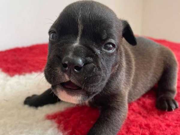 La réservation est ouverte pour neuf chiots Bulldog Continentaux nés le 6 mai 2022 dans une portée de douze. Ils se spécifient par leur couleur fauve, et sont inscrits dans le Livre des Origines Français (LOF).