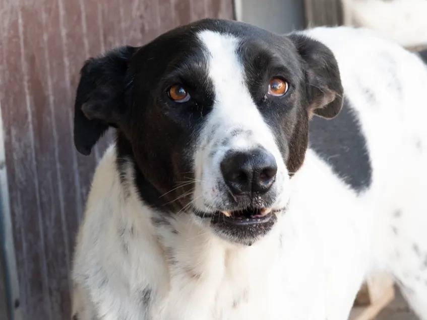 Voici Koro, un chien au pelage blanc avec marque noire de cinq ans, curieux et tendre. Il attend une famille attentive qui lui offrira un foyer chaleureux où il pourra poursuivre son épanouissement en toute sérénité.