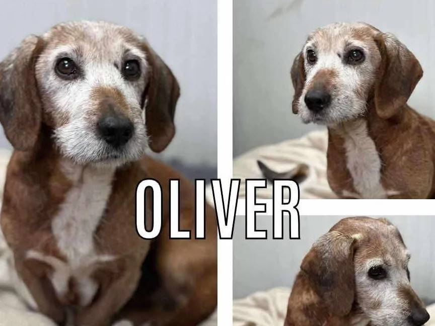 Nous vous proposons d'accueillir chez vous Olivier, un chien Teckel au pelage marron et blanc de quatorze ans. Non compatible avec les enfants, il espère trouver un foyer aimant qui prendra soin de lui.