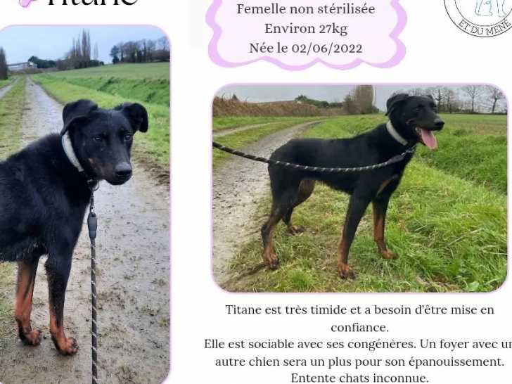 De couleur noire et feu, Titane est une chienne Beauceron âgée de trois ans que nous proposons à l'adoption. Elle attend un foyer aimant qui dispose déjà d'un chien pour une vie épanouie.