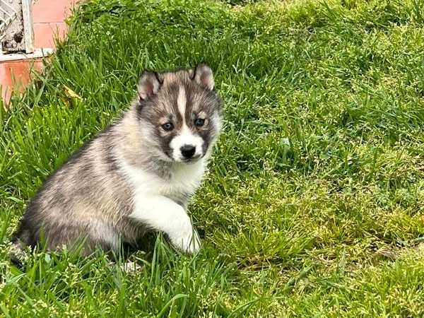 Le Domaine des P'tits Loups Givrés propose un chiot Husky de Sibérie issu de parents LOF. Ce mâle gris loup aux yeux vairons, né le 26 juin 2025, est un véritable chanteur. Nous demandons 650 euros pour ce...