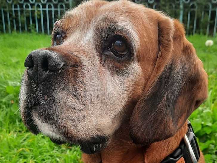 Nous sommes enchantés de vous proposer à l'adoption ce chien marron et blanc âgé de dix ans nommé Bibou. Celui-ci ne peut pas vivre avec des chats.