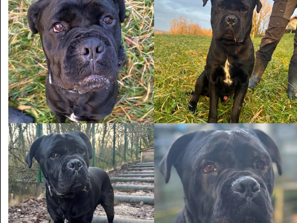 C’est avec grand plaisir que nous vous proposons Unis, un chien Cane Corso noir avec une marque blanche de deux ans, sensible et loyal, à éduquer avec douceur et patience pour construire une relation de confiance.