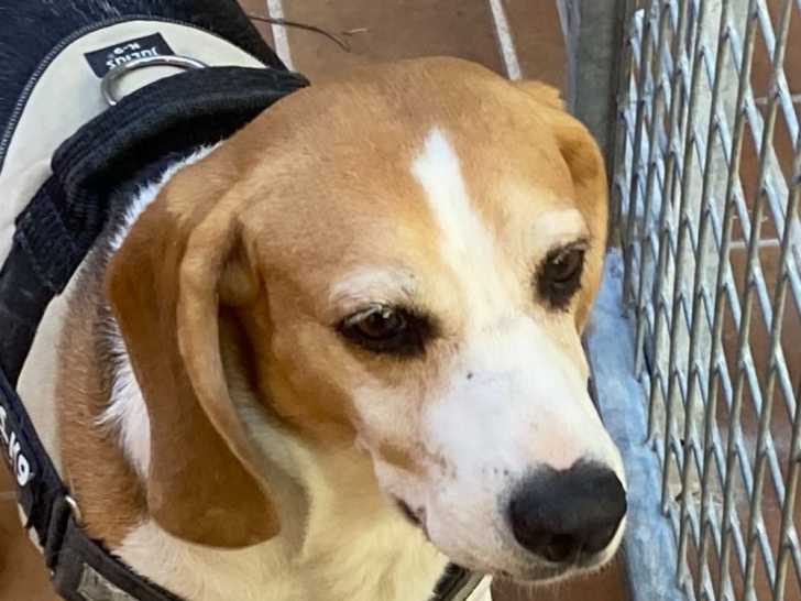 Nous vous proposons à l'adoption Maggie, une chienne Beagle de couleur marron et blanc âgé de neuf ans. Il est préférable qu’il soit le seul animal domestique de son futur foyer.