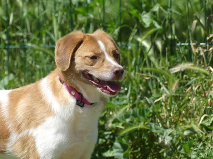 Roxi est une chienne rousse et blanche de quatre ans disponible à l’adoption dans notre refuge. Elle doit vivre dans un foyer qui a un jardin.