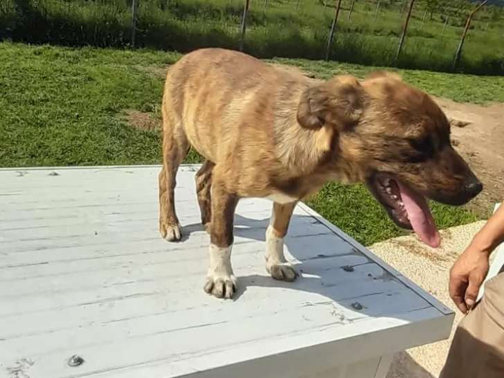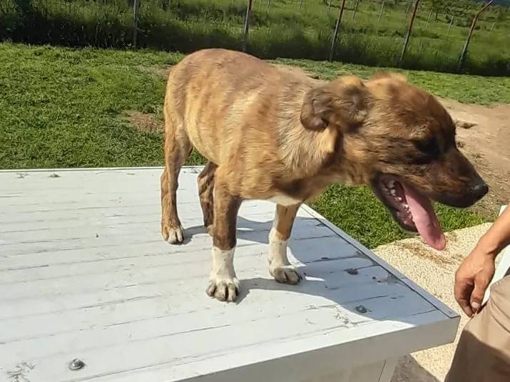 Voici Avia, un chiot femelle de couleur bringée et âgé de quatre mois que nous mettons disponible à l'adoption. Son éducation est à poursuivre.
