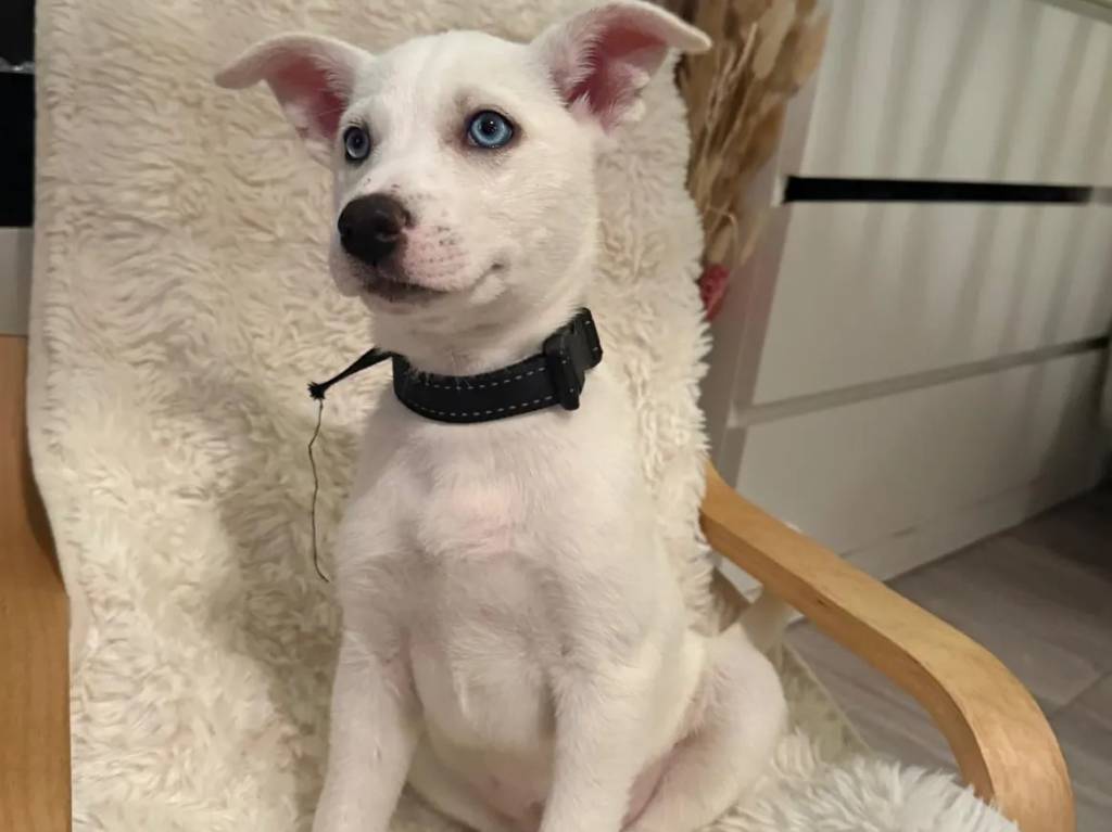 Découvrez Laïka, un chiot femelle Husky de Sibérie de couleur crème, âgée de deux mois. Elle est vive, joueuse et débordante d’énergie, idéale pour une famille active qui pourra l’accompagner dans son développement.