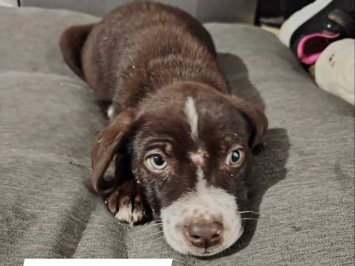 Découvrez Archibald, un chiot mâle au pelage chocolat et blanc âgé de deux mois. Doux et encore très jeune, il recherche une famille aimante qui lui offrira stabilité, attention et une vie pleine d’affection.