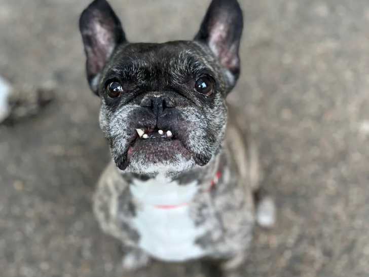 Nous avons le plaisir de vous proposer à l'adoption ce chien Bouledogue Français au pelage bringé de neuf ans nommé Micky. Il ne s'entend pas avec ses congénères, mais peut vivre avec des chats.