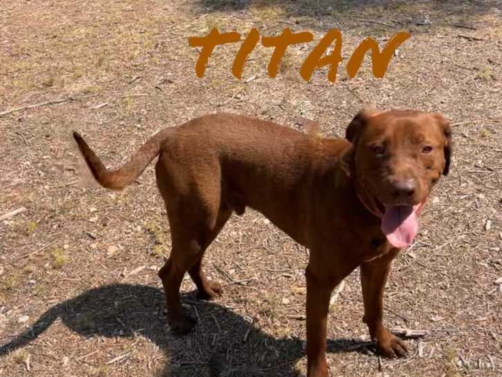 Il est âgé de deux ans, ce chien marron nommé Titan que nous mettons disponible à l'adoption. Les chats ne font pas partie de ses amis.