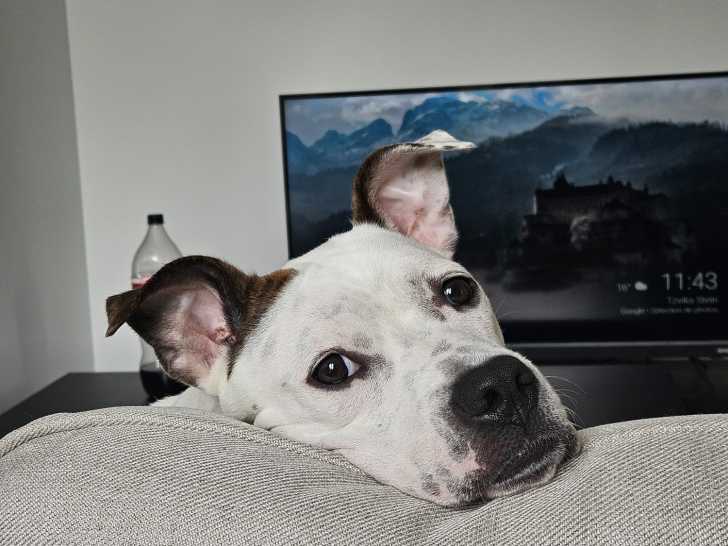 Son nom, c’est Dina, ce chiot femelle blanc avec marque noire âgé de sept mois que nous vous proposons d'adopter. Celui-ci est sociable avec ses congénères.
