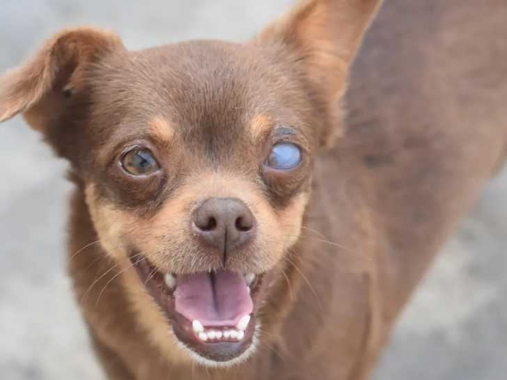 Arboré d’un pelage chocolat, Chipo est un jeune chien âgé de onze mois que nous proposons à l'adoption. Il est aveugle d’un œil, mais se révèle très sociable.
