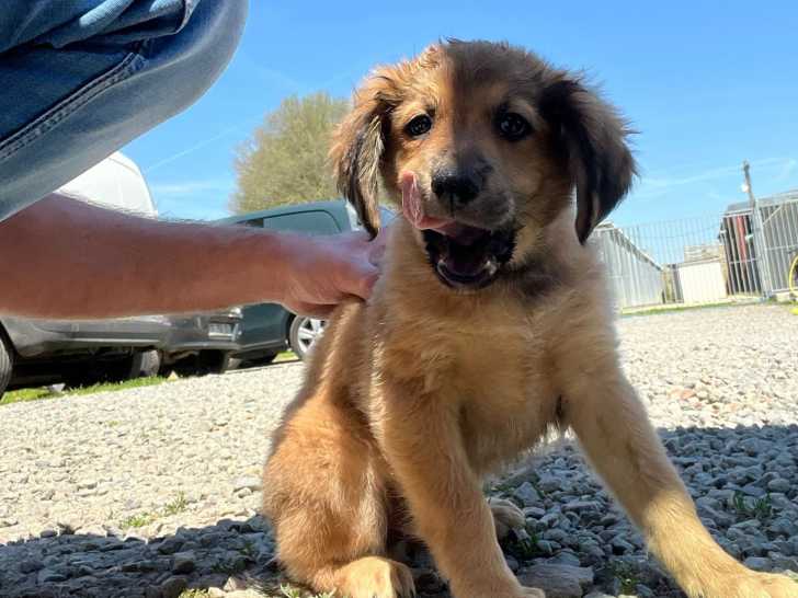 Arboré d'un pelage marron, Abricot est un chiot mâle âgé de quatre mois que nous mettons disponible à l'adoption. Il aspire à trouver une famille conviviale, prête à lui offrir tout l'amour qu’il mérite....