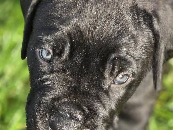 Une femelle Cane Corso noire, née le 30 janvier 2026 à Grand-Fayt, est la dernière disponible de sa portée. Les parents, visibles sur place, sont de bon gabarit et testés sains.