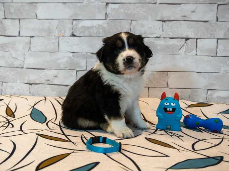 Ce jeune mâle Berger Américain Miniature est vacciné et identifié. Sa disponibilité est fixée au 10 mars 2026. Son prix est établi à 1600 euros, avec trente jours d’assurance offerts pour son départ.
