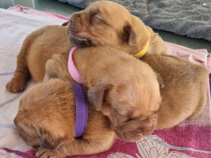 Nous avons le plaisir de vous présenter notre portée de Dogues de Bordeaux fauves comprenant huit mâles et cinq femelles. Ceux-ci ont vu le jour le 30 juin 2022, ils sont à réserver pour le moment.