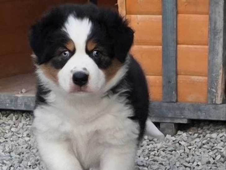 Notre élevage familial propose à la vente deux chiots femelles Bergers Australiens. Une est noir tricolore aux yeux bleus, l’autre rouge tricolore aux yeux bleus, toutes deux inscrites au Livre des Origines Français (LOF).