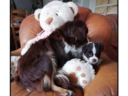 Nous ouvrons à la réservation une portée de deux chiots Bergers Américains Miniatures née le 28 octobre 2022. Elle est composée de mâles dont l’un est de couleur rouge merle et l’autre, rouge tricolore. Ils sont inscrits dans le Livre des Origines Français (LOF).