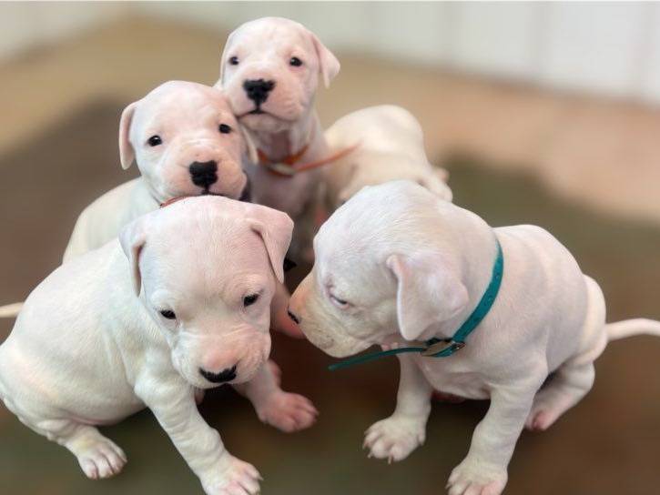 Nos quatre chiots Dogues Argentins sont nés le 9 juin 2025, et issus d'une lignée d'exception. Ces petites femelles, toutes entendantes, sont prêts à partir tout e suite. Fruits de 20 ans de sélection...