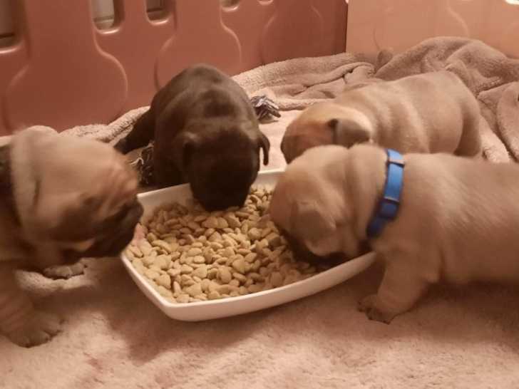 Sur une portée de neuf chiots Bulldog Continental, il reste quatre mâles et une femelle de disponibles. Ces bébés issus de parents testés pour les hanches, coudes et maladies génétiques sont proposés à 1200...