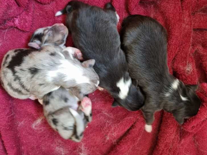 Nous vous proposons de réserver des chiots Bergers des Shetland nés le 21 avril 2022 : deux femelles tricolores, vendues à 1500 euros, et un mâle bleu au prix de 1700 euros.